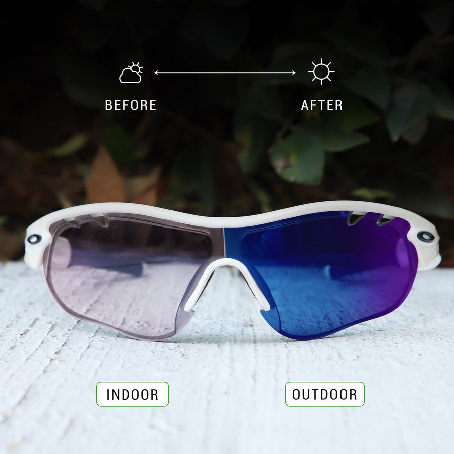 Automatically adjusts tint based on UV exposure, offering crystal-clear vision indoors and glare-reducing darkness outdoors. Blocks 100% of harmful UVA and UVB rays for all-day protection and comfort.