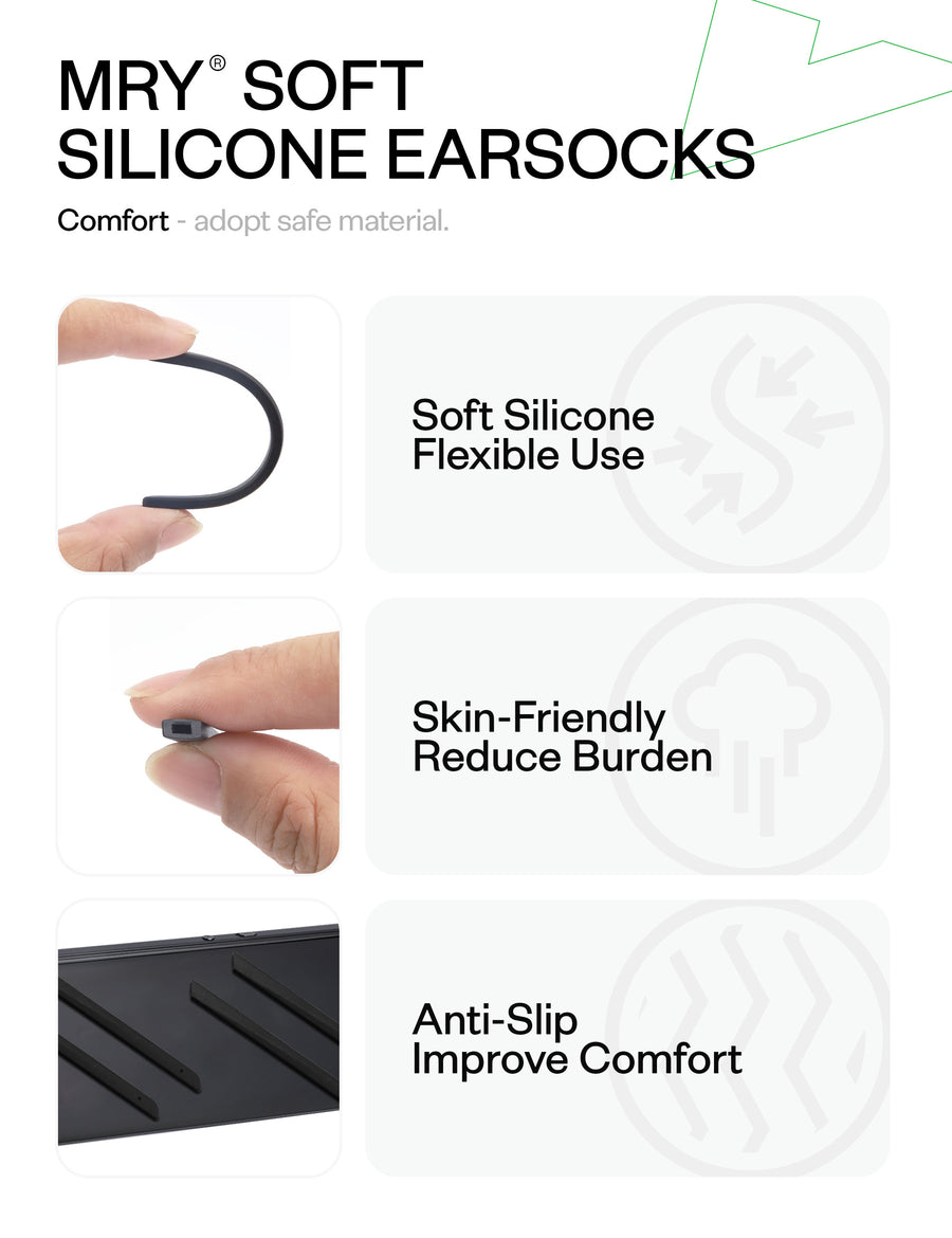 Ergonomically shaped to evenly distribute pressure behind the ears, reducing discomfort and fatigue during extended wear.