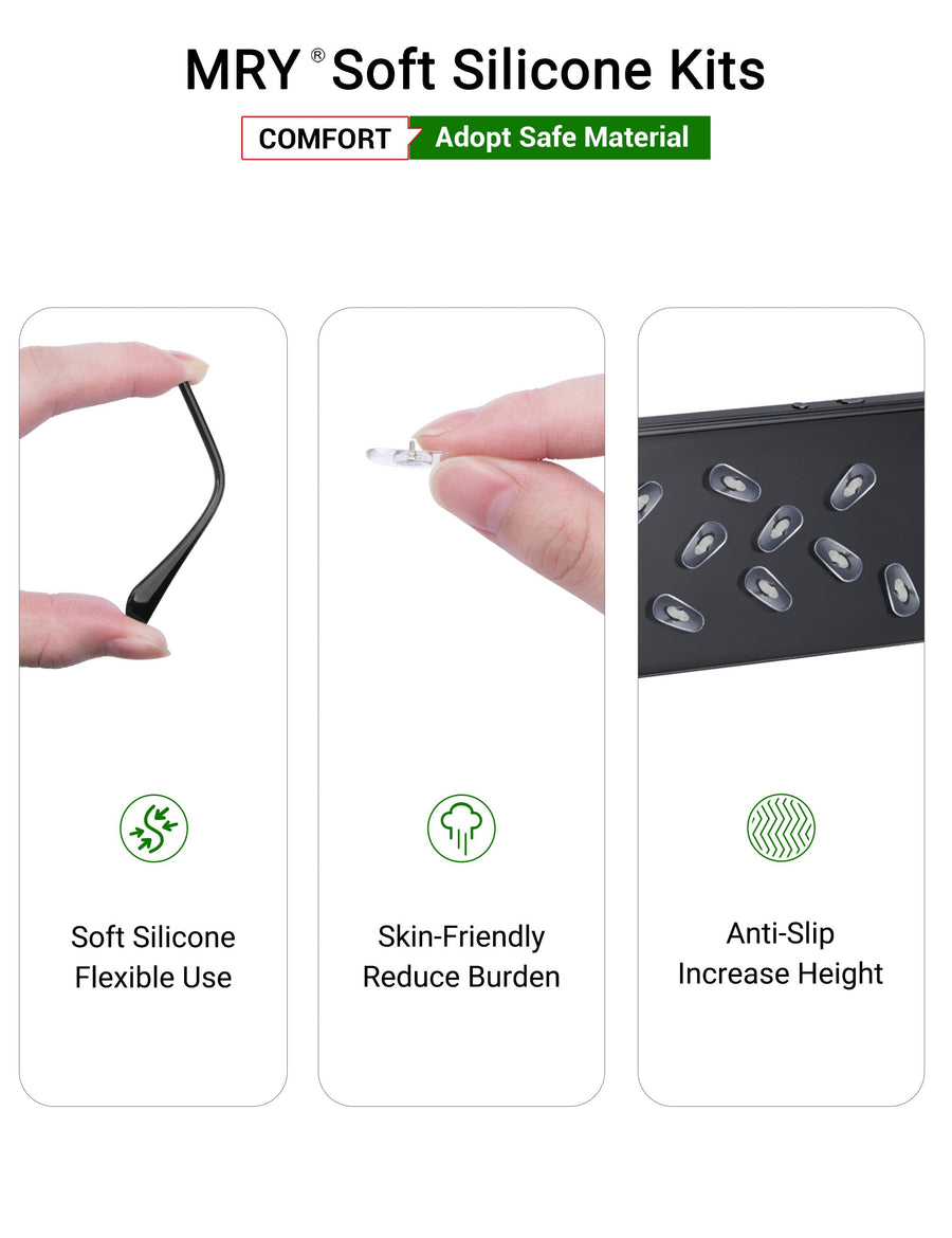 No tools needed. Quick snap-on design ensures effortless replacement and a firm hold for both nose pads and temple sleeves.